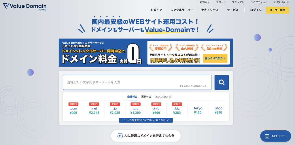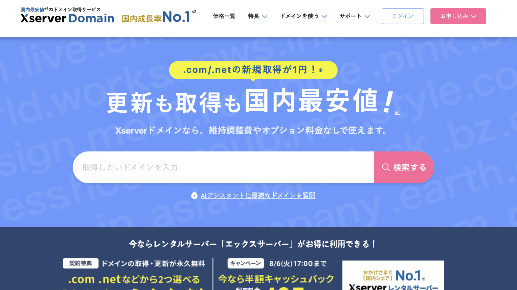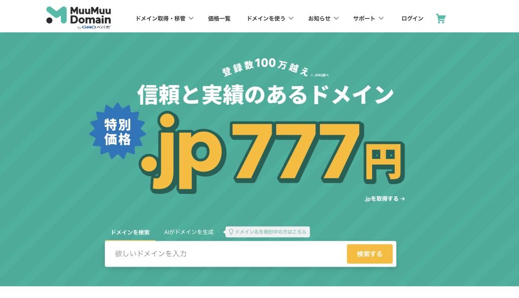 累計ドメイン登録件数680万件を突破し、国内では珍しい海外ドメインも多く含む570種類以上を取り扱つかってます。